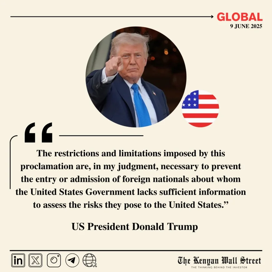 Trump’s Blanket Visa Bans on 19 Countries Goes into Effect. Last week, US President Donald J. Trump signed an executive order that fully or partially suspends the entry of nationals from 19 countries, most of them African countries, from Monday 9 June 2025. The executive order cites national security threats, visa overstays, and insufficient cooperation from foreign governments in vetting and identity-sharing procedures. It imposes full suspensions on 12 countries, seven of them from Africa-Chad, Somalia, Sudan, Libya, Eritrea, Republic of the Congo, Equatorial Guinea. It also imposes partial immigration suspensions-affecting tourists, students, and temporary workers-on Burundi, Sierra Leone, Togo, and Chad. https://8t8media/trumps-blanket-visa-bans-on-19-countries-goes-into-effect/